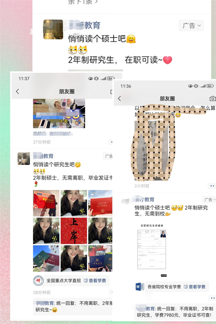 最近,我在朋友圈刷到这样的广告——“悄悄读个研究生,惊艳所有人”“不声不响,拿下硕士”。